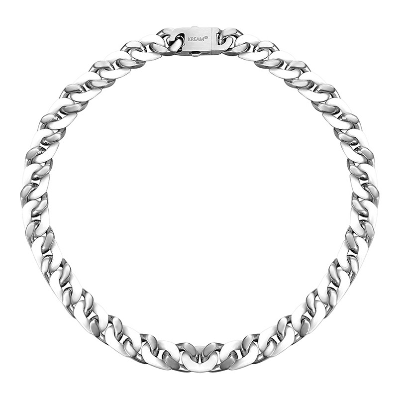 A corrente Double White é feita de aço inoxidável, sendo o acessório perfeito para ocasiões especiais como festas e atividades noturnas. A engenharia e design da peça é projetada e executada pela KREAM, que cria uma peça não só despojada, como também muito elegante.